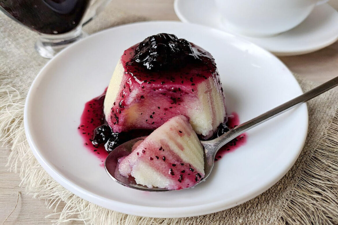 Această budincă fină, parfumată cu lapte de cocos, este ușor dulceagă și acompaniată perfect de prospețimea zmeurei. Ideală pentru un desert lejer și exotic.