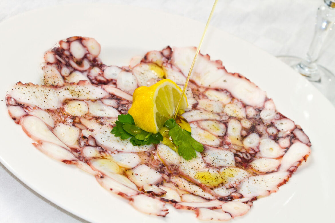 Carpaccio-ul de caracatiță este o delicatesă rafinată, ideală pentru mesele de sărbătoare. Preparatul impresionează prin aspectul său sofisticat și prin aroma unică, care combină gustul delicat al caracatiței cu prospețimea unui dressing simplu, dar savuros. Această rețetă necesită puțin efort, dar rezultatul va fi cu siguranță pe placul tuturor invitaților.