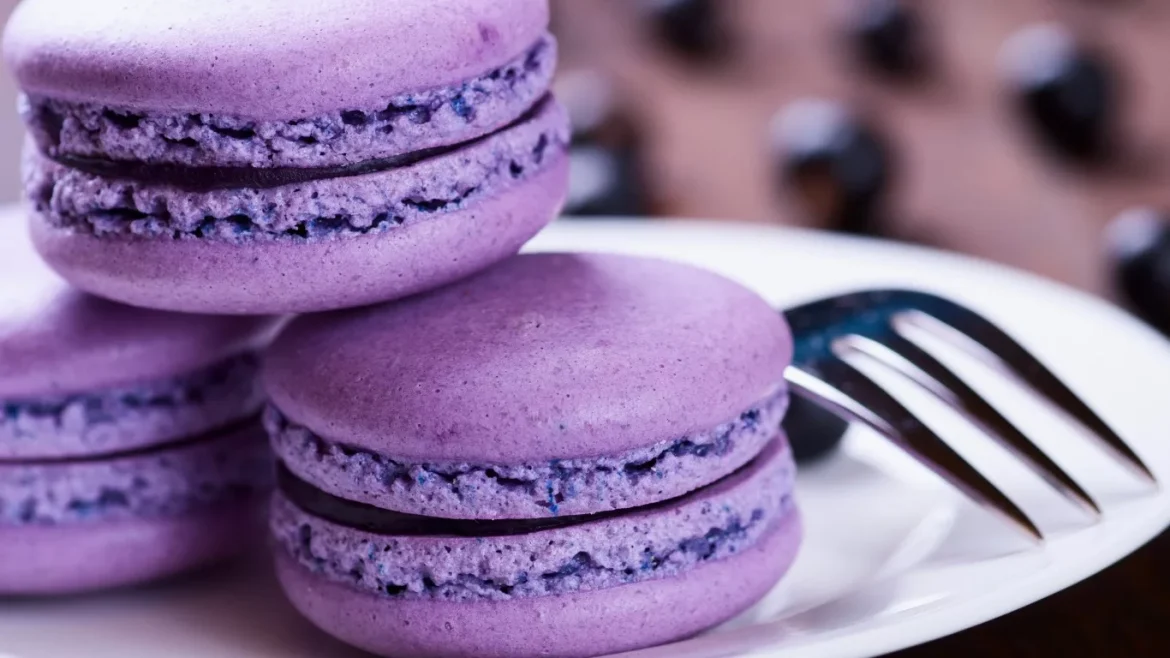 Aceste macarons cu cremă de coacăze negre vor impresiona prin gustul lor echilibrat și aspectul elegant, fiind un desert ideal pentru masa festivă de Revelion.