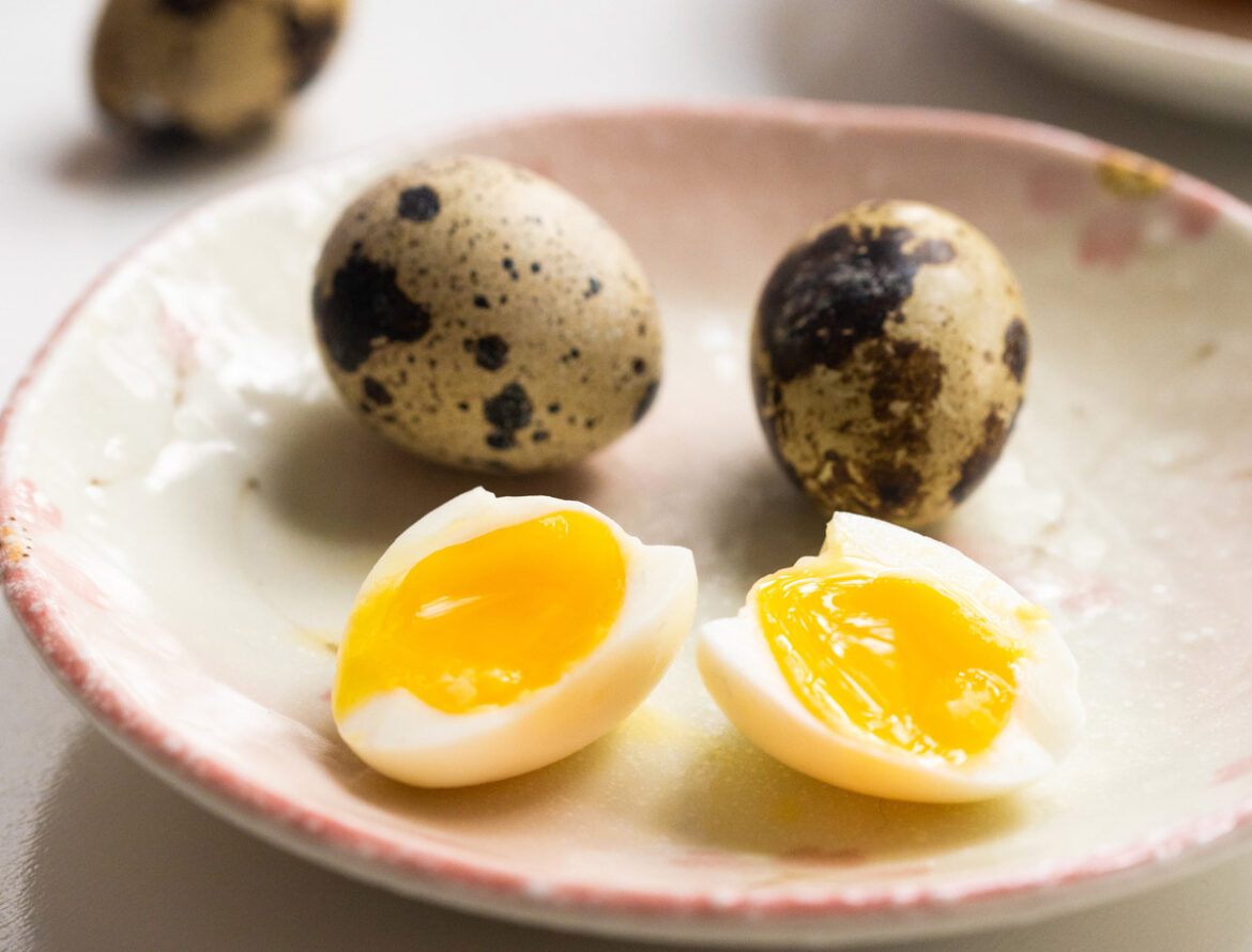 - Fierbe ouăle de prepeliță timp de 4 minute în apă clocotită cu sare.