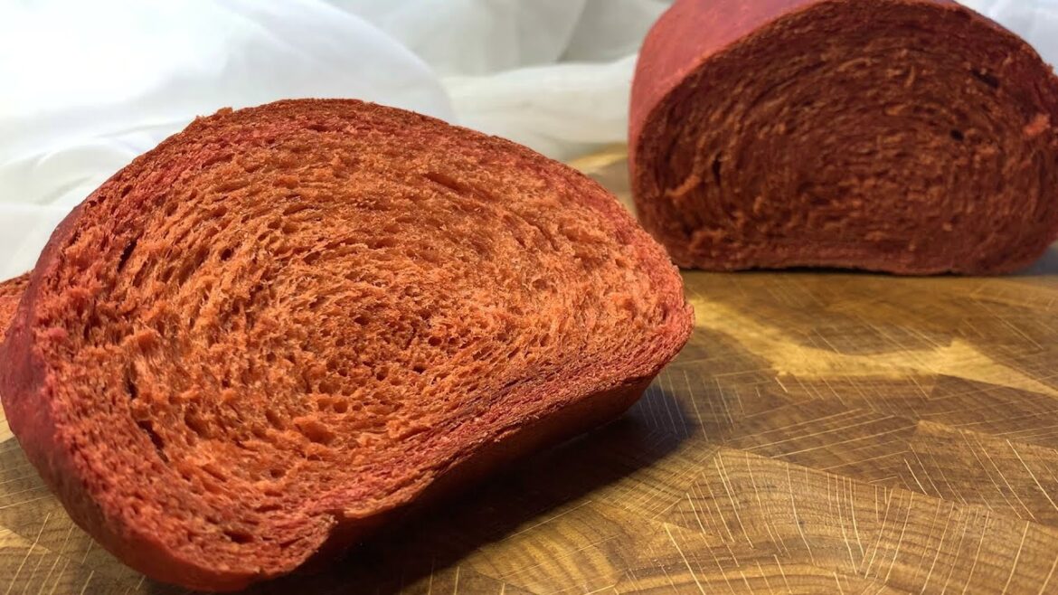O pâine colorată, frumoasă și sănătoasă, cu gust delicat și ușor dulceag datorită sfeclei.