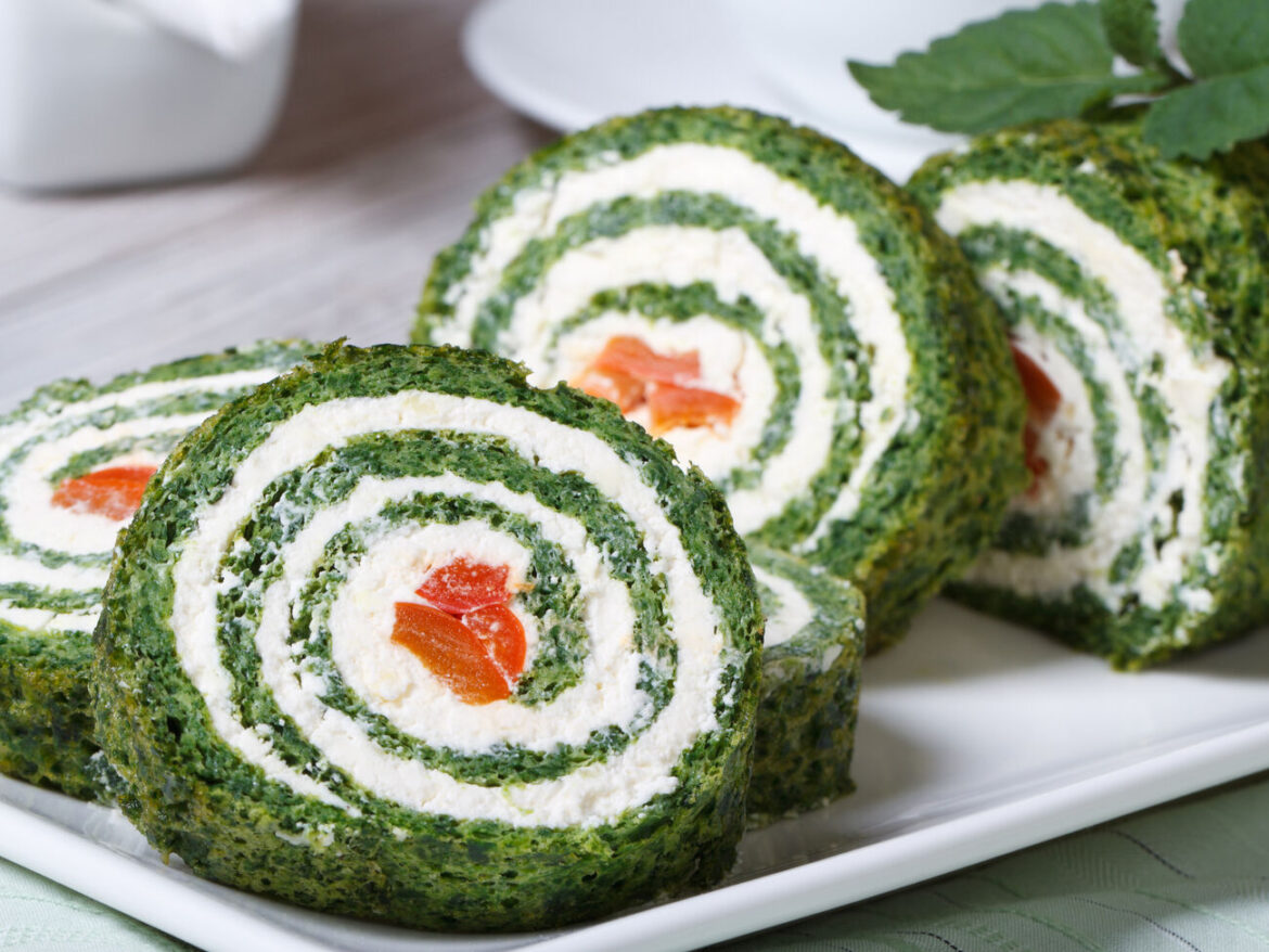 Rulada cu spanac și cremă de brânză este un aperitiv perfect pentru masa de Revelion, oferind un contrast de culori vibrante și un gust desăvârșit. Acesta combină textura moale a blaturilor din ouă și spanac cu delicatețea brânzei și gustul rafinat al somonului afumat, fiind o alegere elegantă și delicioasă pentru o seară festivă.