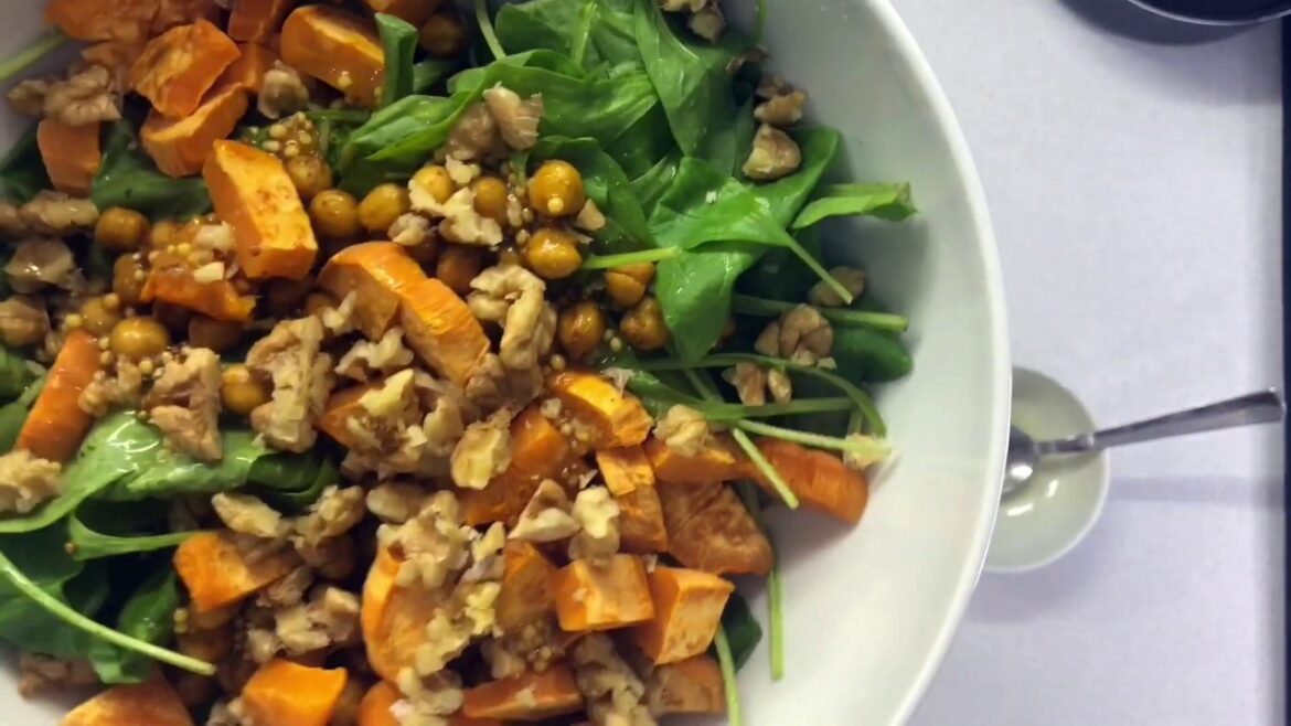 Aceasta salata satioasa si parfumata imbina gustul dulce al cartofilor cu textura crocanta a nautului si o vinegreta aromata. Poate fi servita atat ca fel principal, cat si ca garnitura.