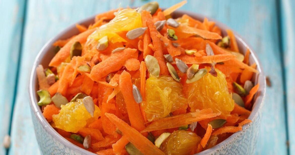 O combinație surprinzător de delicioasă, această salată aduce împreună crocantul morcovului, dulceața portocalei și textura crocantă a semințelor, fiind ideală ca gustare sau garnitură.