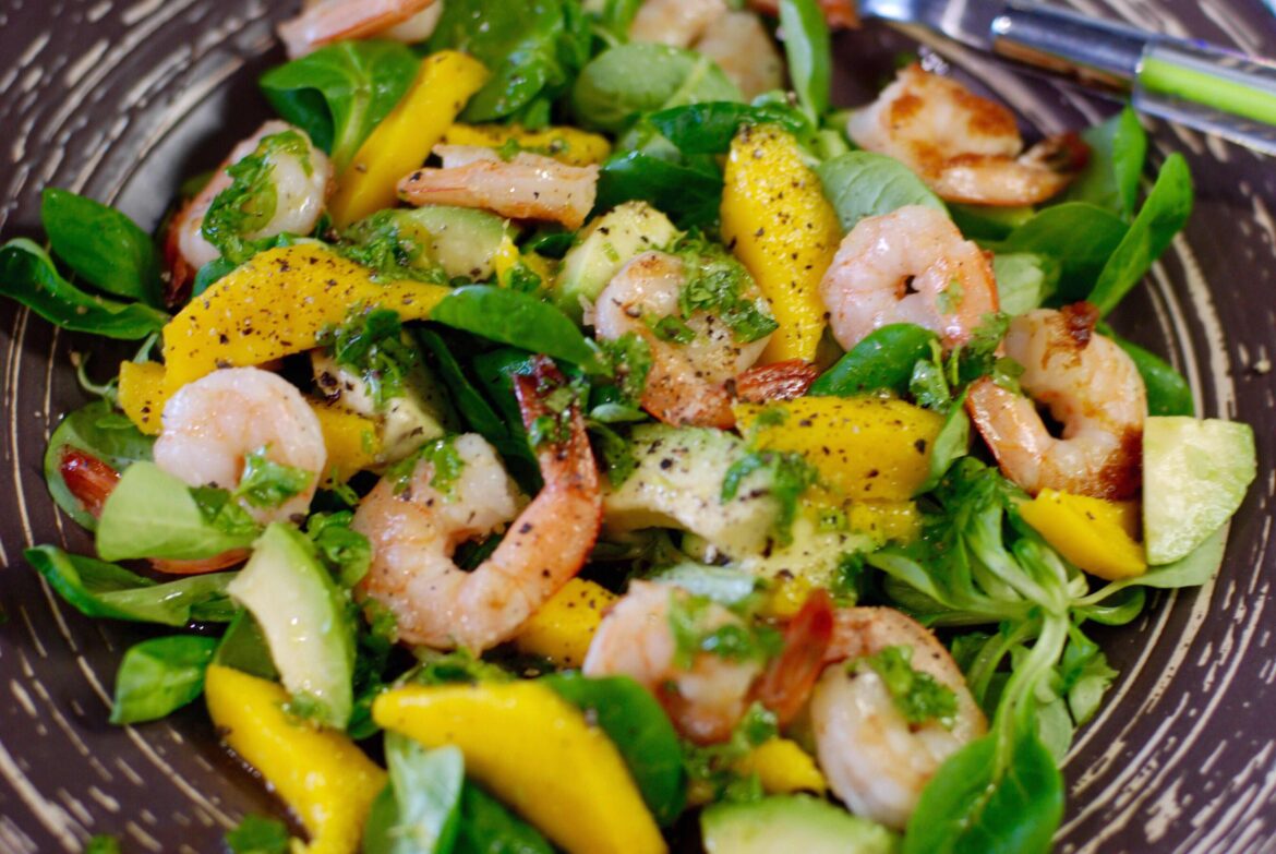 Savurați o salată delicioasă și sănătoasă, care combină aromele exotice ale mango-ului, textura fină a avocado-ului și savoarea creveților proaspeți. Această salată nu doar că este o explozie de gusturi, dar oferă și un contrast plăcut de texturi, fiind perfectă pentru un prânz revitalizant sau o cină ușoară. Este alegerea ideală pentru zilele călduroase de vară sau pentru o masă elegantă, plină de culoare și vitalitate.