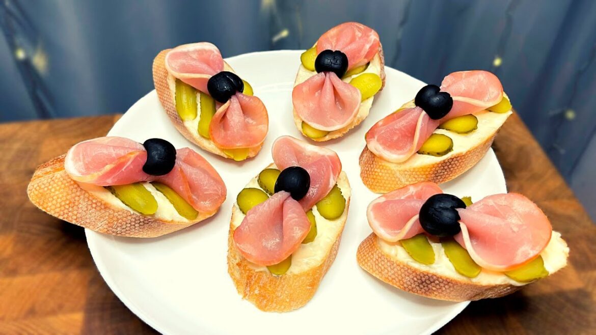 Un aperitiv ușor, rapid de preparat și spectaculos ca aspect, perfect pentru a impresiona musafirii la orice masă festivă. Aceste sandvișuri sub formă de „funde” combină savoarea șuncii delicate cu prospețimea castraveților murați și cremozitatea cașului.