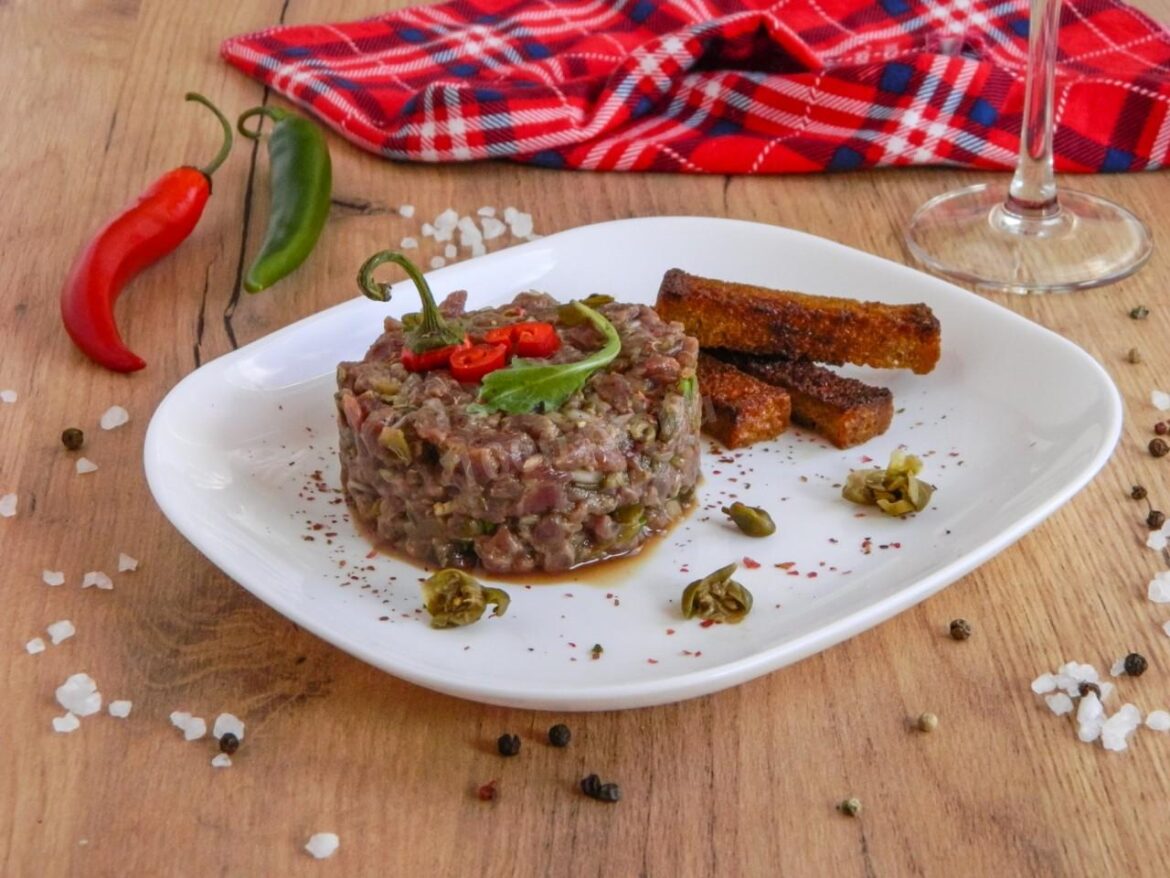 Tartarul de vită organică este un preparat rafinat, apreciat pentru textura sa delicată și aromele echilibrate. Ideal pentru cei care preferă o alimentație sănătoasă, acest preparat pune în valoare calitatea cărnii de vită organică, bogată în proteine și nutrienți esențiali. Combinația dintre carnea fragedă, ingredientele atent alese și savoarea subtilă a condimentelor transformă acest tartar într-un deliciu sofisticat, perfect pentru orice ocazie specială.