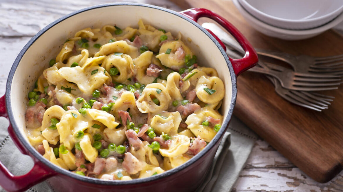 Această rețetă simplă și cremoasă de tortellini cu smântână și șuncă este perfectă pentru o cină rapidă, dar elegantă. Combinația de paste umplute cu brânză, sos bogat și bucăți de șuncă creează un preparat savuros pe care toată familia îl va aprecia.